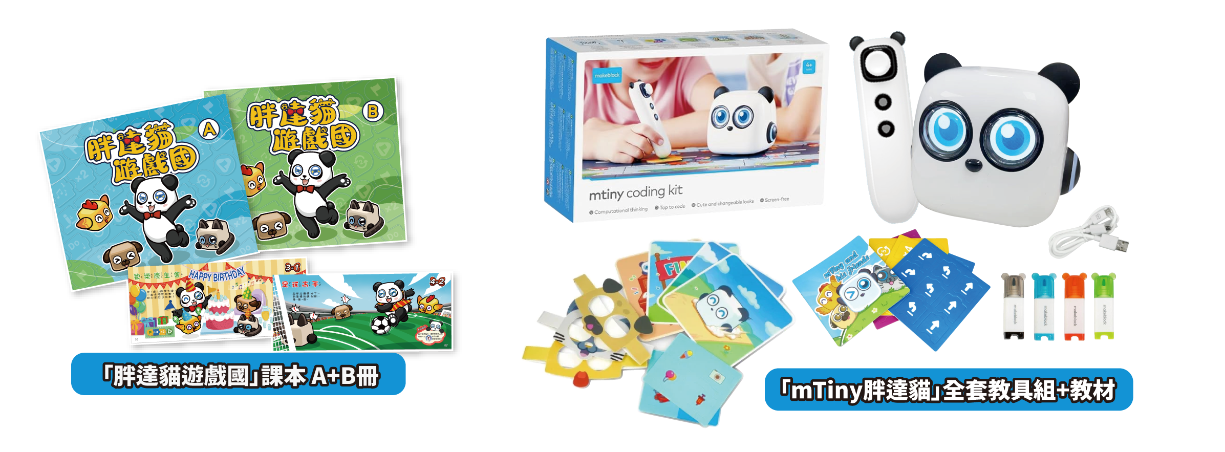 mTiny胖達貓有豐富的地圖包、音樂指令、表情指令、動作指令、圖形指令,專為兒童研發,不使用任何3C產品的機器人,是園所推廣AI課程入門的最佳選項。